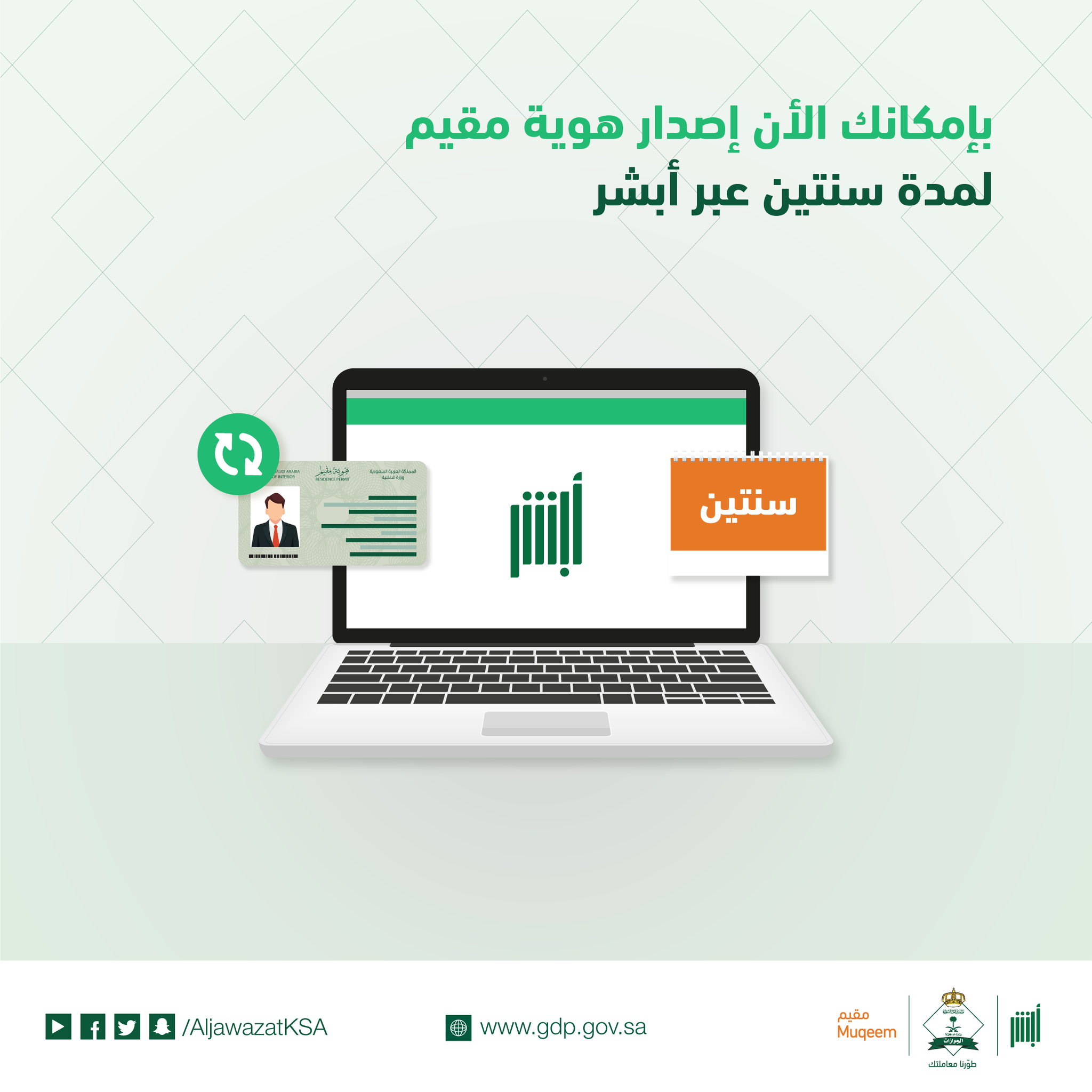 تجديد الاقامة سنتين. خطوات تجديد الاقامة سنتين يمكن من خلال ذلك النظام أن تقوم بتجديد الإقامة بطريقه مريحه للغايه وهي من الطرق الأقل تكلفة عن الطرق التقليدية السابقة وذلك عن طريق الدخول الى موقع ابشر. الجدير بالذكر أن التجديد مجانا وعلى حساب الدولة ولمدة سنتين لأبناء السعوديات بالإضافة إلى أنه يتم تجديد إقامات التابعين لإبن المواطنة أو زوج المواطنة تلقائيا وبنفس المدة المختارة ومع تحمل كامل لرسوم تجديد. وبعد أن أوضحت الجوازات في بيان توضيحي لكافة المقيمين سعر رسوم تجديد الإقامة في السعودية 14 9 2018 أعلنت أيضا تأكيد المملكة على القرار السابق بشأن تقليل مدة الإقامة للعمالة الوافدة.